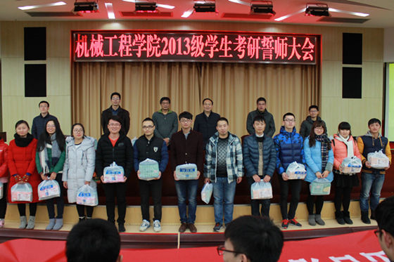 会议最后,院领导及在场的老师为每位考研同学送去了慰问品,也送去了“温暖”。机电132班的孙慧同学说:“就在我们动摇、快要坚持不下去的时候,此次大会就像一剂强心针为我们带来了力量。我们定当全力以赴,不忘初心、不负厚望!”