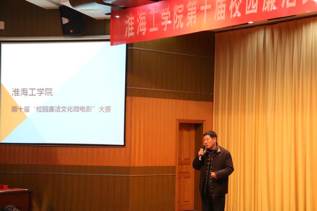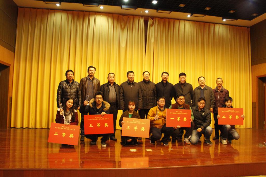由校纪委主办、文学院承办的《第十届校园廉洁文化微电影大赛》于12月7日晚6时20分在讲堂楼报告厅顺利举行,本次大赛的评委有市工商局副局长金和培、市委宣传部文改办主任刘光亚、市工商局广告处处长张永晶、市广告协会秘书长李长生等。校纪委副书记王吉春、文学院党委书记马恒民、广告系系主任谢朝清出席了本次活动。