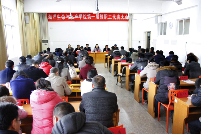 根据《关于召开二级教职工代表大会的通知(淮工工发〔2016〕22号)》的要求,各单位统一在2016年12月底以前召开二级教职工(代表)大会。经过精心策划、认真筹备,14日下午海洋生命与水产学院第一届教职工代表大会在海洋北楼308率先召开。校工会主席万洁到会并致词,海洋生命与水产学院52名代表出席会议,海洋生命与水产学院副院长申欣主持会议。各分工会主席或委员参加观摩学习。