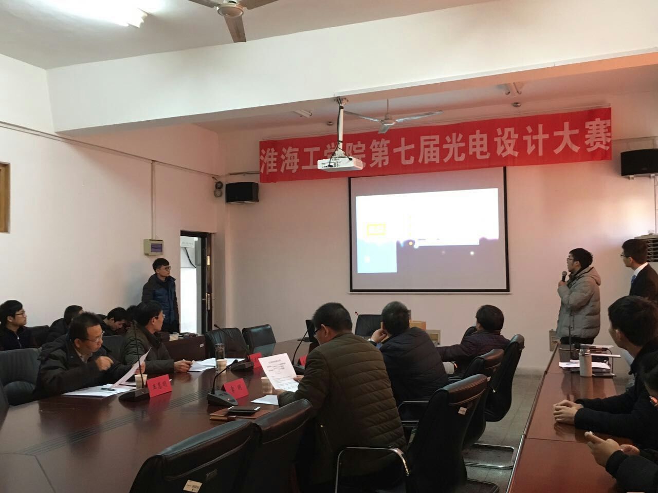 2016年12月16日下午,由我校教务处主办、理学院承办的第七届光电设计竞赛决赛在理学院会议室隆重举行。电子学院副院长掌明、机械学院副院长赵明光、理学院副院长史林兴、光电信息科学与工程系主任王惠明、新能源科学与工程系副主任孙庆强应邀担任本届比赛的评委。