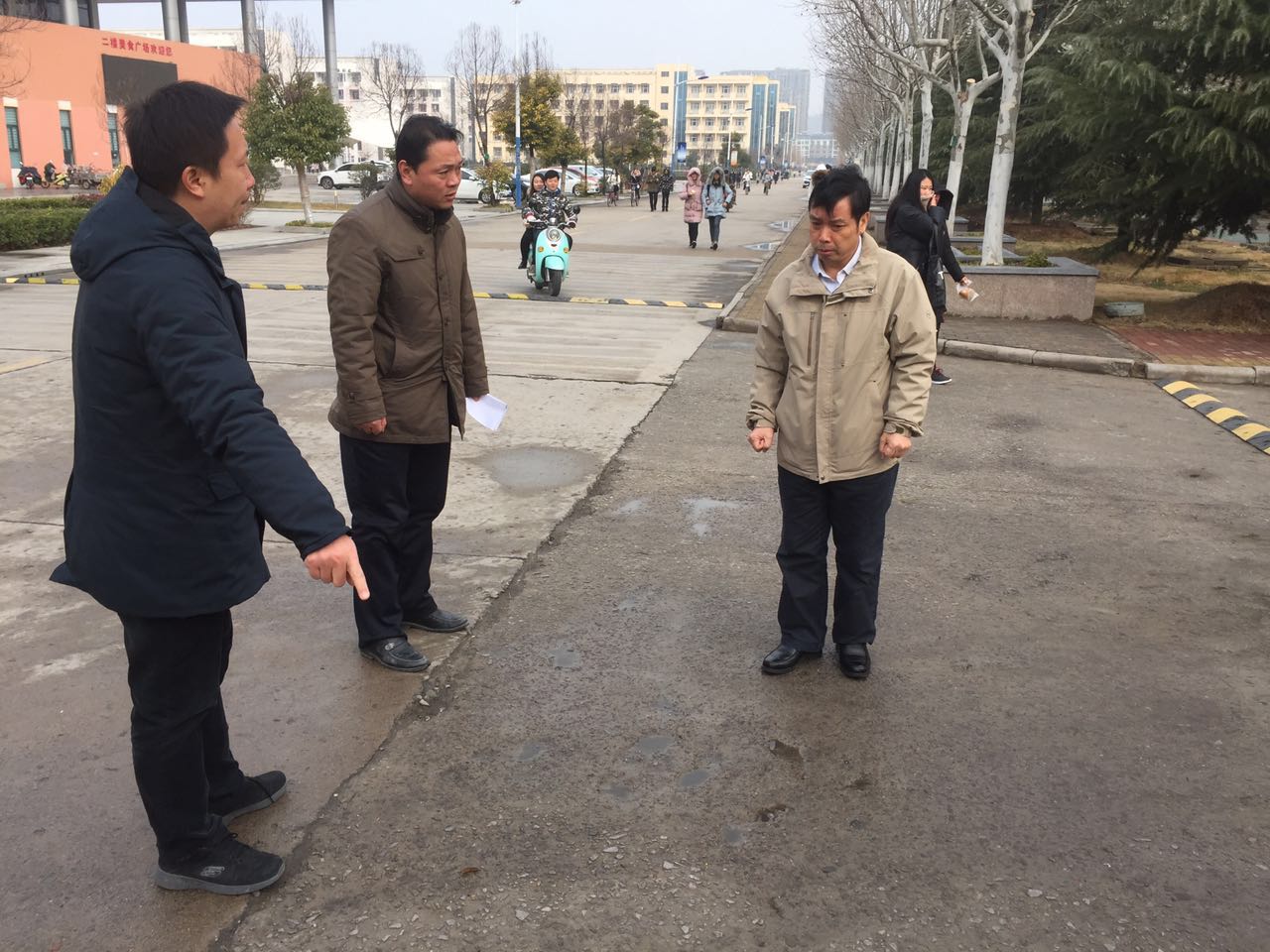 2月22日上午,副校长许兴友来到后勤管理处,考察指导苍梧校区校园道路“白改黑”工作并提出具体要求。