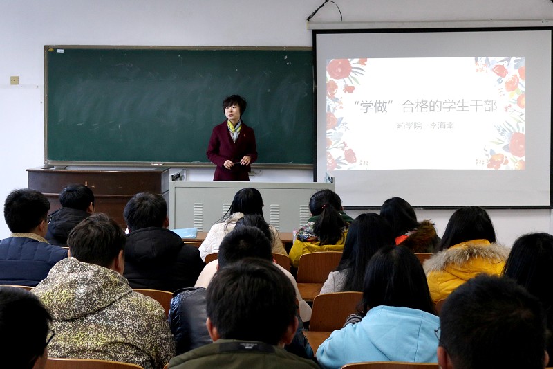 3月6日下午,药学院在教学主楼N106室召开新学期首次学生干部培训班,各班级班长、团支书和学院四个学生组织的副部长以上学生骨干参加了培训会。分团委书记王博主持,院长助理李海南做了“学做合格学生干部”主题讲座。