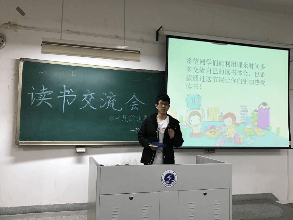 活动伊始,刘振林向参加此次活动的成员致谢,并介绍活动的目的与意义。随后,刘振林向大家推荐《平凡的世界》这本书,他结合PPT详细介绍了本书的作者、人物以及精彩的章节,并阐述了自己对于本书的看法,呼吁同学们放下手机,阅读书籍。