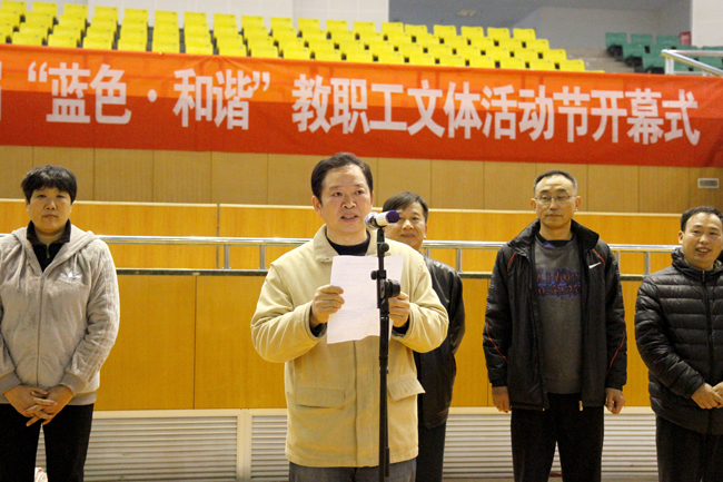 校党委副书记、纪委书记史顺良宣布第二届文体活动节开幕并致辞,他首先向光临开幕式活动的市排球协会的各位领导、专家和广大运动爱好者们表示热烈地欢迎,对市排协长期以来对我校职工排球运动给予的关心、支持和指导表示衷心地感谢。他说教职工文体活动是校园文化建设的一个重要组成部分,对凝聚人心、全面提高教职工综合素质有着独特的作用。希望通过举办形式多样的校园文化活动,积极宣传新时期淮工精神,营造浓厚的大学创建氛围;希望广大教职工在做好本职工作的同时,合理安排时间,积极参加各项活动,强身健体,陶冶情操,充分展示良好的形象素质和奋发向上的精神风貌,以饱满的热情和昂扬的斗志积极投身到学校事业发展当中,为加快推进江苏海洋大学创建而努力奋斗!