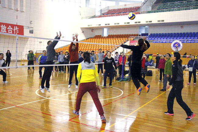 3月12日下午,我校第二届“蓝色·和谐”教职工文体活动节在校体育馆正式拉开帷幕。校党委副书记、纪委书记史顺良,市贸促会会长、市排球协会副主席气排球专委会主任杨保东,市排球协会秘书长胡永明,市海管中心主任、市排球协会副秘书长许祝华,市招标办副主任、市排球协会副秘书长陈尚国应邀出席了本次活动。活动由工会主席万洁主持,各分工会主席、委员和市、校排球及羽毛球爱好者参加了本次活动。