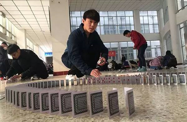 3月25日下午,由土木与港海工程学院大学生科技协会主办的淮海工学院第三届多米诺纸牌大赛,在苍梧校区土木楼大厅准时举行。出席本次比赛的嘉宾有土木与港海工程学院副院长张三柱,党委副书记李明金,辅导员卞辉以及学生代表土木与港海工程学院大学生科技协会会长朱晨等。本次多米诺纸牌大赛,各学院的同学以2-3人一组的形式报名参赛,全校共组有40小队、100余人参加了本次比赛。