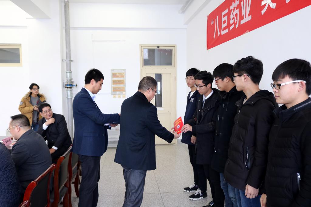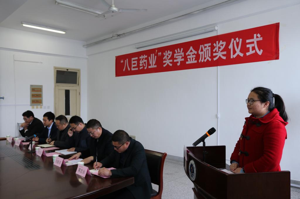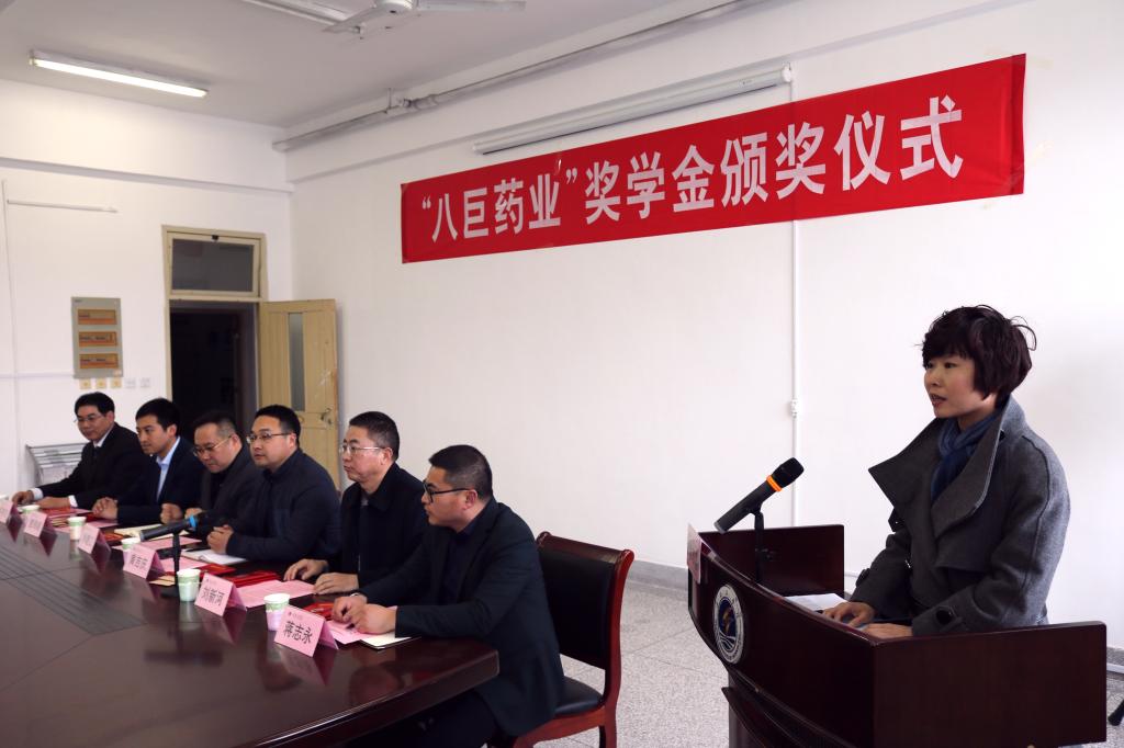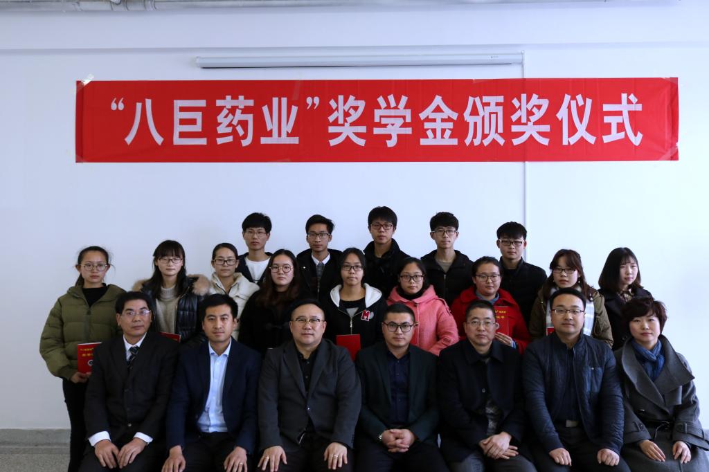刘新河首先致词,介绍了学院和八巨药业开展产学研合作和设置奖学金的有关情况。他说:根据双方协议,八巨药业每年提供2万元,在化学工程学院和药学院设置奖学金,专项奖励化工制药大类各专业品学兼优、家庭贫困的学生。根据协议规定的评选条件,经个人申报和严格评选,共有14名同学获得2017年“八巨药业奖学金”。黄吉庆宣读了表彰决定,他希望受表彰的同学再接再厉,积极进取,立志成才,以优异的成绩感恩社会、感恩企业。