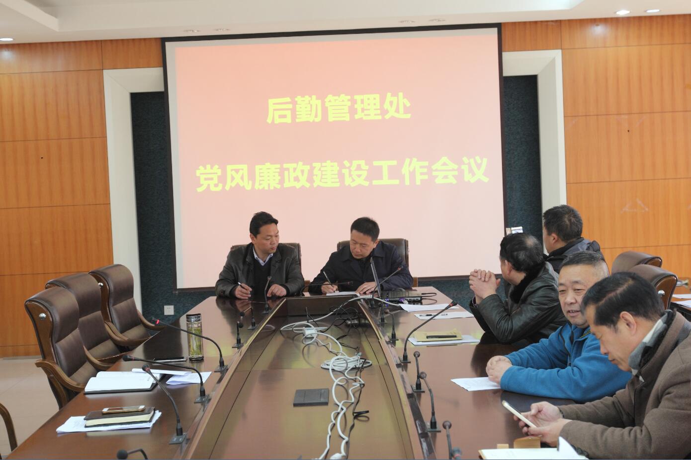 3月29日下午,后勤管理处在文渊楼二楼会议室组织召开党风廉政建设工作大会。后勤处领导班子、各科室负责人、所有后勤职工及物业公司项目经理参加了会议。会议由副处长冯源主持。