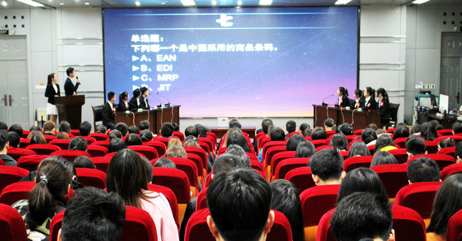 比赛开始选手们依次进行自我展示,其中一名选手以诗结尾做自我介绍,给评委老师们留下了深刻的印象。在常规答题环节,选手们你追我赶,奋勇争先,七位选手全部回答正确。抢答环节既考验手速又考验脑力,1号选手表现非常出彩博得观众们多次掌声。选手们准备非常充分,比分不相上下,又进行了加时赛,加时赛为主观题,选手们各抒己见,纷纷阐述了自己对物流未来发展的见解,之后由评委老师为选手们的表现结合当前物流发展的趋势进行了点评,同学们都受益匪浅。经过激烈的角逐,物管161班的王周凯同学夺得冠军。