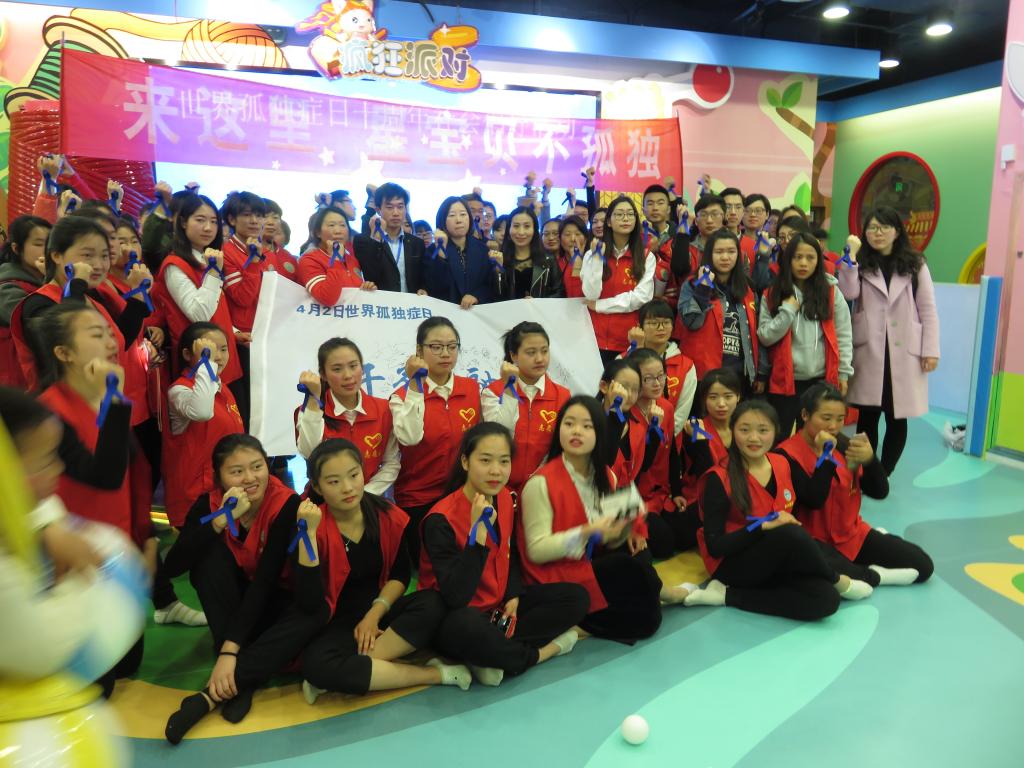 4月1日,在第十个“世界孤独症日”来临之际,海洋生命与水产学院实验中心、学生党支部携手新起缘特教中心及连云港市工贸学校志愿者走进万达广场孩子王游乐场,为孤独症儿童举办了“关注孤独儿童,让世界充满爱”的志愿服务活动。