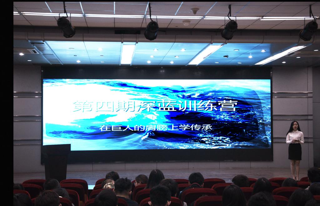 4月5日晚,淮海工学院第四期深蓝训练营在苍梧校区艺术楼报告厅举行,本次训练营的主题为“在巨人的肩膀上学传承”,校团委负责老师、第九期“青马菁英班”全体学员和部分学生骨干参加了培训活动。