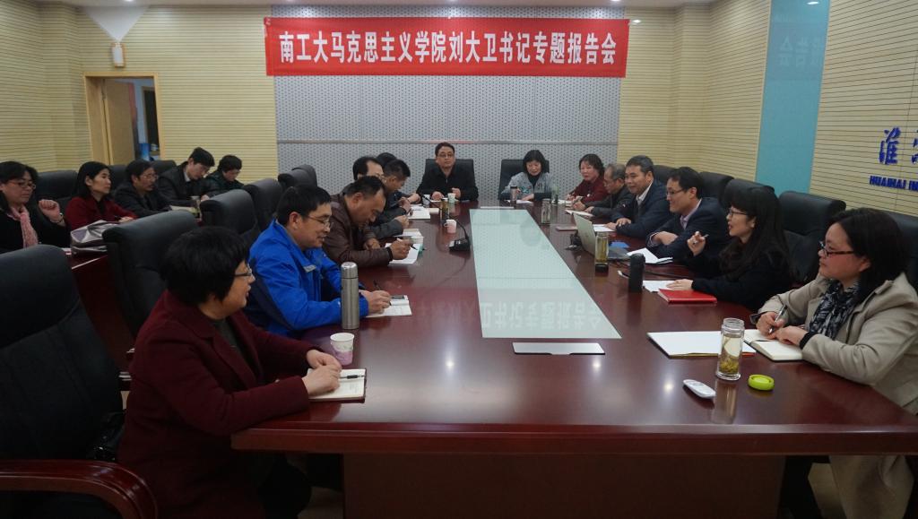 4月7日下午,应马克思主义学院邀请,南京工业大学马克思主义学院党总支书记刘大卫在会议中心渤海厅作了题为“在困顿中破局,求内涵式提升——南京工业大学马克思主义学院发展的实践与思考”的专题报告。报告会由马克思主义学院党总支书记金芙蓉主持,学院全体教职工参加了此次报告会。