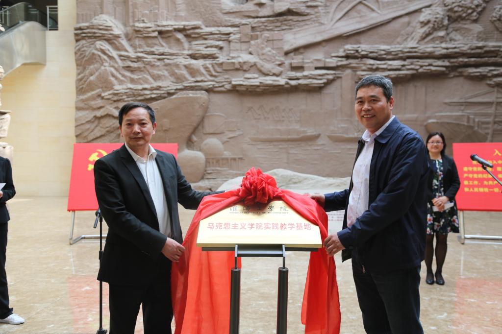 为深入贯彻落实全国高校思想政治工作会议精神,特别是习近平总书记重要讲话精神,着力推进思政课教学改革,切实为思政课注入实践活力,4月19日下午,马克思主义学院与连云港市革命纪念馆合作共建思政课实践教学基地签字仪式在市革命纪念馆举行。马克思主义学院副院长张学武、沈春梅,纪念馆馆长白植明、副馆长王滨,以及马克思主义学院全体教师、纪念馆的员工参加了签字仪式。