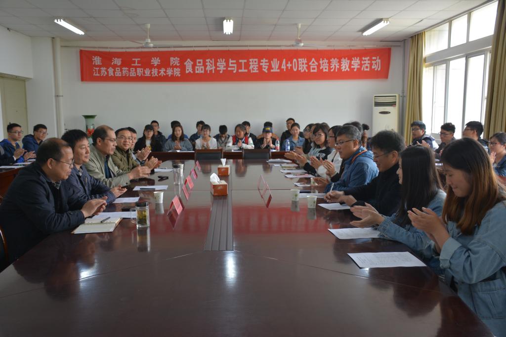 4月21日,淮海工学院与江苏食品药品职业技术学院两校联合培养“食品科学与工程”专业“4+0”本科的34名2016级新生,在食品学院副院长郑虎哲的带领下,来我院进行教学活动。