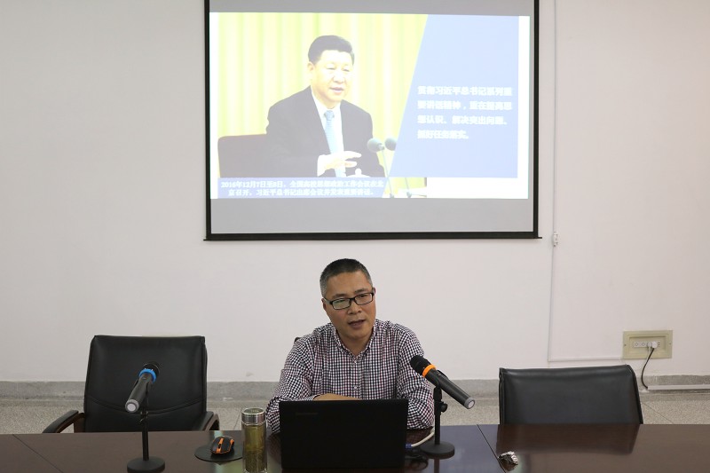 尹德树的报告主题是《回归本位,改革创新,做好新形势下的高校思想政治工作》,他从学习贯彻习近平总书记在全国高校思想政治工作会议上的重要讲话展开宣讲。报告分为明确办学方向、坚持立德树人、创新方式方法、打造过硬队伍、加强党的领导等五个部分,既有理论深度,也有案例分析,深入浅出,通俗易懂。