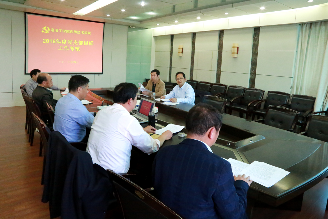 为深入贯彻落实全面从严治党要求,推动基层党建工作规范化、制度化、科学化建设,不断增强党支部凝聚力和战斗力,根据《淮海工学院党支部建设工作目标及考核办法》,4月28日,应用技术学院党委对该院机关、学生等四个党支部2016年度建设工作目标进行考核。该院党委书记周清华主持会议,党委副书记、副院长万金店,各党支部书记、党政办负责人参加了考核会。