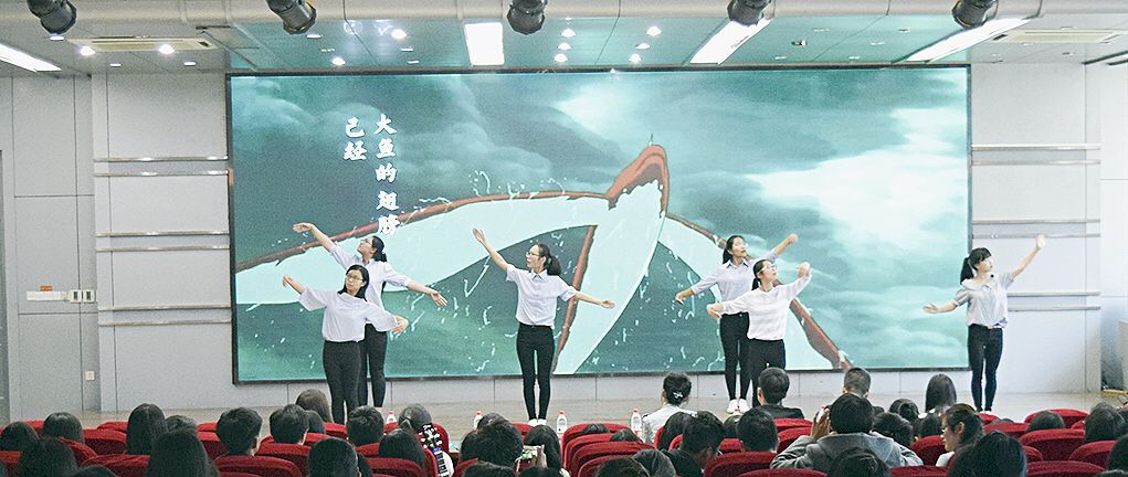 花样百出的表演形式为比赛增添了不少亮点,有白衣舞者从容而舞,形外化于意;也有将手语舞与古典舞糅合,新奇的创意让观众们连连赞叹。“虽然不会,但情不自禁地跟着他们打起手语来了。”大一的徐同学笑着说道。