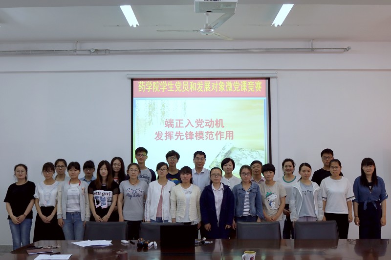 5月20日,药学院党总支在教学主楼1106会议室举行发展对象“微党课”比赛,党总支书记李树安和总支委员马卫兴、李海南、温德育等担任评委,全体学生党员和业余党校第53期发展对象培训班学员参加了活动。