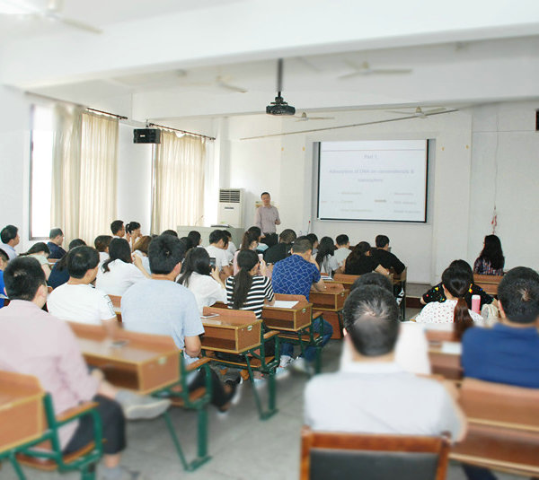 近日,应江苏省海洋资源开发研究院邀请,加拿大滑铁卢大学刘珏文教授来我校参观访问,并于5月22日上午做了题为《Interfacing DNA with metal ions, metal oxides, and metal nanoparticles》(DNA与金属离子、金属氧化物和金属纳米材料的相互作用)的学术报告。主要介绍了核酸分子与金属离子及金属氧化物颗粒的相互作用及其在金属离子检测中的应用等方面前沿进展。