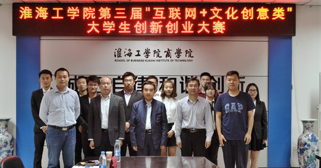 5月25日晚,商学院承办的第三届“互联网+”大学生创新创业大赛淮海工学院“新道杯”校内赛之“互联网+文化创意类”决赛在苍梧校区主楼606会议室举行。担任本场比赛评委的有教务处副处长隋福利、商学院副院长张瑞龙、商学院工商管理系主任徐永其、连云港宇宙狼电子商务有限公司总经理王伟、连云港易简信息技术服务有限公司总经理张先丹。