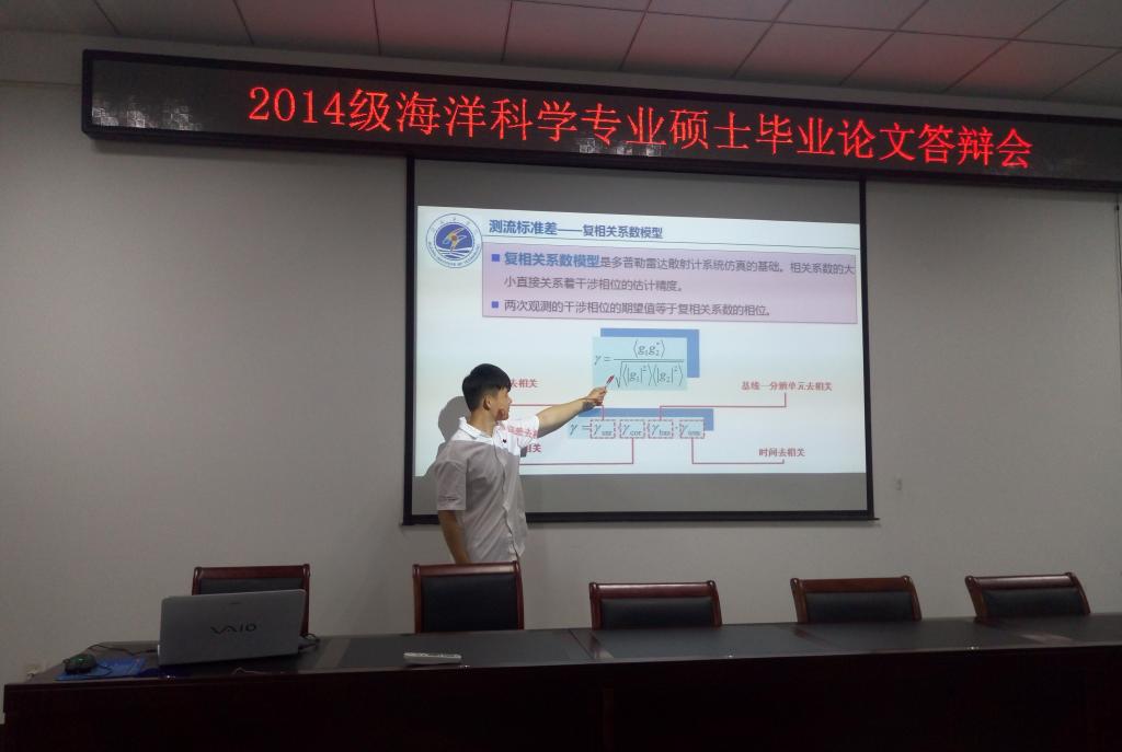 5月27日,测绘与海洋信息学院2014级首届自主培养硕士研究生学位论文答辩会在测绘楼207会议室举行。答辩委员会由校外专家和校内专家共5名委员组成,答辩委员会主席由浙江海洋大学海洋科学与工程学院左军成教授担任。