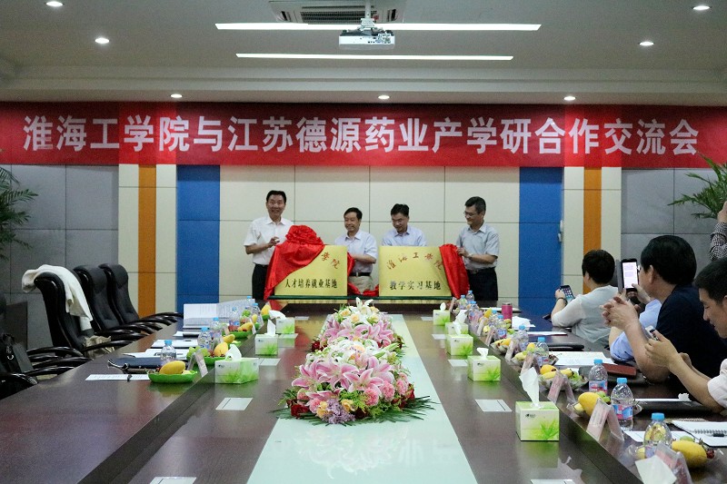 6月5日下午,我校在江苏德源药业股份有限公司举行教学实习和人才培养就业基地揭牌仪式,副校长许兴友出席,并与市开发区党群工作部部长兼党工委委员万军、德源药业董事长李永安、校教务处处长李纪明共同为两个基地揭牌。药学院党总支书记李树安、副院长马卫兴、院长助理李海南、德源药业副总经理兼研究院院长杨汉跃和人力资源行政总监薛四明等参加会议。