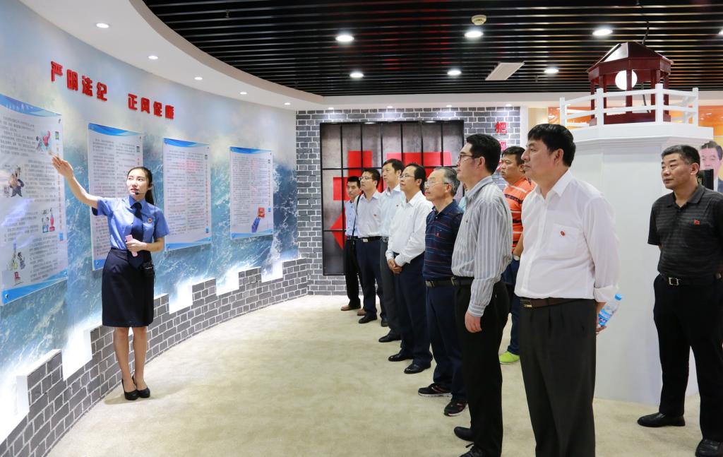 新落成的连云区检察院预防职务犯罪警示教育基地分为四个展厅,通过大量的图片、文字、影音等,集中展示了党和国家领导人关于党风廉政建设的重要论述、重要的党纪党规条例,并以鲜活的反面典型事例揭示了新时期职务犯罪的主要特征及对党和国家的严重危害,用不同视角展示了中央、省、市惩治和预防职务犯罪的坚强决心和强劲力度。在解说员的现场解说下,党员们通过阅读图文、观看视频播放等演示形式,接受一场深刻的警示教育。大家表示,要深入做好“两学一做”学习教育,不断强化党纪意识和廉洁服务意识,以典型案例为警示,常怀律已之心,常思贪欲之害,端正正确的世界观、人生观、价值观,筑牢拒腐防变的思想防线,勤政务实地做好本职工作。