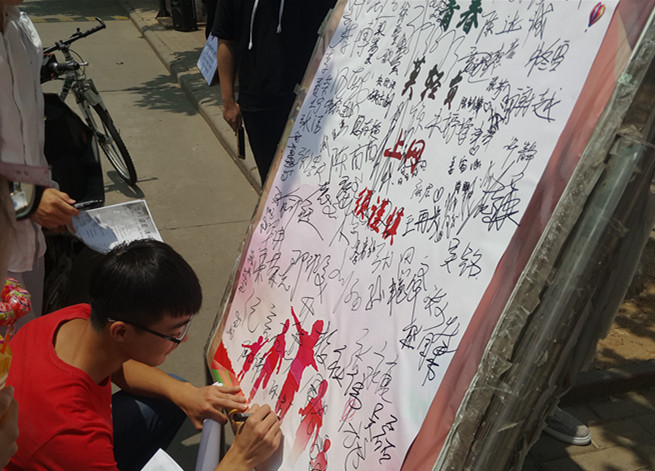 院学生会于6月1日中午在一食堂前开展“韶华莫轻负,上网须适宜”为主题的签名活动,他们向过往的同学讲述无节制上网和游戏的危害,号召同学们更好地利用自己的时间,远离网瘾,将大学生活过得更加充实而有意义。许多同学受到吸引,郑重地签下了自己的名字,做出了承诺。