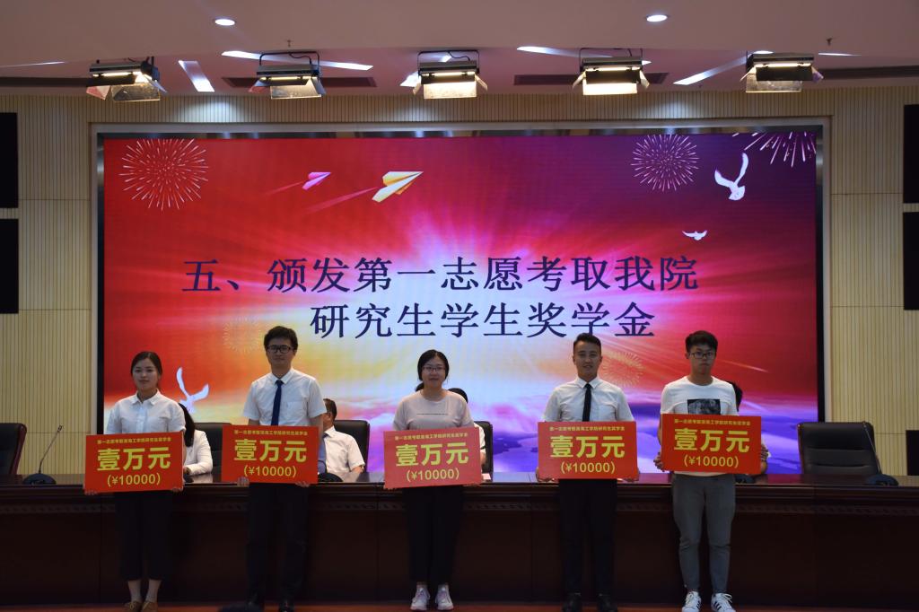 典礼在庄严的国歌声中开始。伴随着激昂的颁奖乐,17位荣获校优秀毕业生、39位荣获考研奖学金、5位荣获第一志愿考取淮海工学院研究生奖学金的毕业生依次上台领奖,享受专属他们的荣耀。