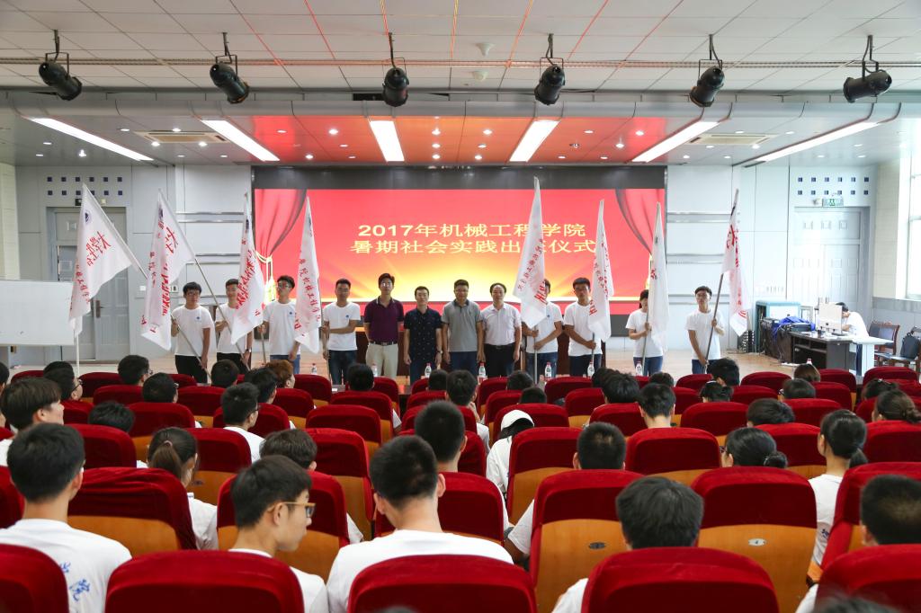 7月4日下午,机械工程学院2017年暑期大学生社会实践出征仪式在苍梧校区艺术楼报告厅圆满落幕。校团委书记朱国军,机械工程学院党委书记毛纪登、党委副书记赵求勇、副院长张元良、各团队指导老师以及150名社会实践队员。仪式由院团委负责人阎文婕老师主持。