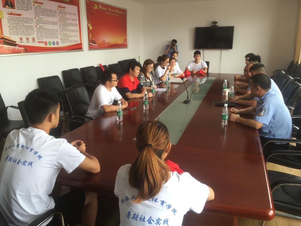 孙健警官首先欢迎体育学院大学生暑期社会实践团队的到来,他肯定了我校大学生暑期社会实践活动,淮海工学院是连云港市第一支到禁毒大队挂牌实践基地的高校,让大学生参与到禁毒宣传工作中来具有积极且长远的意义。近年来,我市涉毒刑事案件呈高发态势,大学生是禁毒宣传的重要对象,同时更是禁毒宣传工作的主力军,希望淮海工学院能与市公安局海州分局禁毒大队形成长效合作,为青年大学生营造“无毒”的健康生活环境。