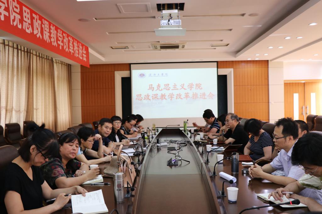 为了全面贯彻落实习近平总书记在全国高校思想政治工作会议上的讲话精神,进一步推进我校思想政治理论课教育教学改革,7月7日下午,马克思主义学院在文渊楼会议室召开了“思政课教学改革”推进会,学院领导、各系主任、全体教师参加了会议。