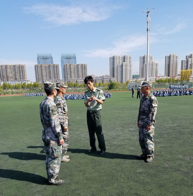 在训练场,学院领导观看了学生方阵训练,与军训教官进行了亲切的交流,了解学生的训练情况。姜兵代表学院向辛勤付出的官兵表示衷心的感谢并送上慰问品。他指出,教官们在军训中充分展示了人民军队的光荣传统和优良作风,体现了艰苦奋斗、勇于拼搏和团队协作的优良品质,为全体新生上了大学的第一课。同时,他希望同学们以教官为榜样,严格要求自己,磨炼意志品质,发扬吃苦耐劳、迎难而上的精神,争取以优异的成绩完成军事训练。