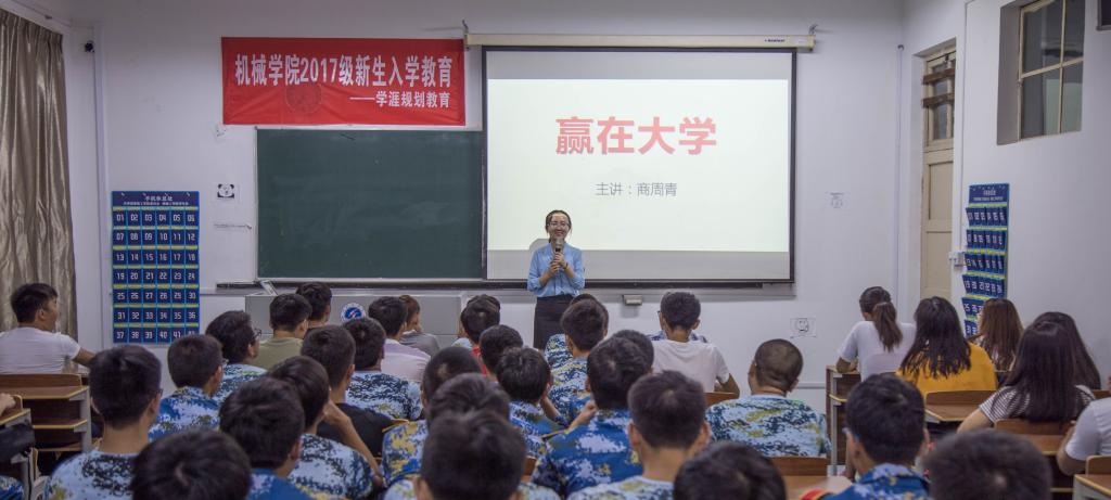 入学教育是学生大学生涯的第一课,是新同学尽快了解大学,适应大学学习和生活,树立新的奋斗目标的重要一环。为了帮助新生顺利、平稳有效地实现从中学到大学的转变,9月17日晚,机械工程学院于通灌校区召开全体2017级新生入学教育大会。学院邀请从事大学生成长成才教育多年的商老师主讲,全体辅导员参加并聆听了讲座。