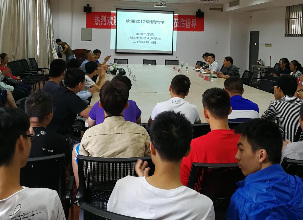 9月16日上午,在江苏农牧科技职业学院水产科学系三楼会议室,海洋生命与水产学院养殖系主任程汉良教授为2017级水产养殖专业“3+2”新生作专业教育专题报告。江苏农牧科技职业学院水产科学系书记王权、副书记马晖、副主任叶建生、新生班主任李生及45名新生参加了报告会。