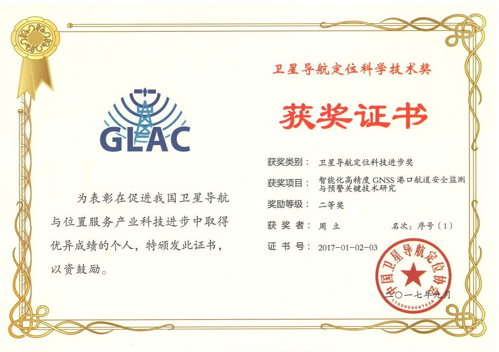 近日,经国家科学技术奖励工作办公室批准,由中国卫星导航定位协会评选的“2017年度卫星导航定位科技进步奖”评选在京圆满落下帷幕。由测绘与海洋信息学院周立教授主持的“智能化高精度GNSS港口航道安全监测与预警关键技术研究”项目获得2017年度卫星导航定位科学技术进步二等奖。颁奖典礼于2017年9月16日在深圳第六届中国卫星导航与位置服务年会上举行。
