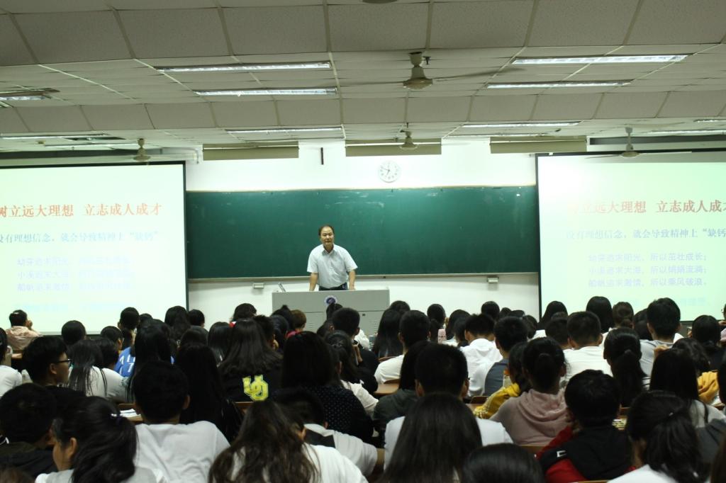 9月25日晚,法律与公共管理学院在通灌校区TZ202举办第三场新生入学教育讲座,本次讲座的主题为“树立远大理想,立志成人成才”,主讲人为法管学院党总支书记朱国良,副书记、副院长黄金虎主持讲座,辅导员赵亚婷和2017级全体新生聆听了本次讲座。