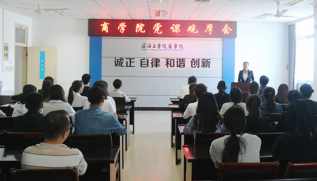 10月9日中午,商学院在主楼606会议室举办了题为“学习‘7.26’重要讲话,践行新时期淮工精神”的党课观摩会,国贸与物流专业学生党支部书记娄婷婷任主讲人,这也是商学院党委“三会一课”系列观摩会第二场。商学院党委书记杨天华、党委副书记张振松、党政办主任兰巍、各党支部书记出席会议,国贸与物流专业学生党支部全体学生党员以及其他学生党支部学生党员代表聆听了党课。