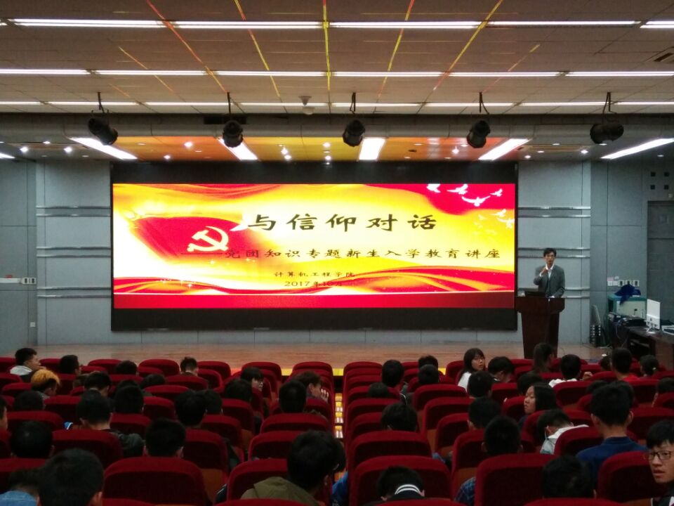 为将“两学一做”常态化教育工作落到实处,引导新生坚定理想信念,提升政治理论素养,从思想上、行动上不断向党组织靠拢,计算机工程学院于10月17日晚在艺术楼报告厅开展针对2017级新生的党团知识专题教育讲座,主讲人为院党委副书记姜兵。
