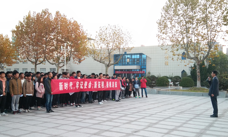 胜利召开的十九大总结了我国在党的领导下取得的举世瞩目的成就,既开启了一个新的时代,也标志着社会主义现代化建设将踏上新的征程。为总结成绩、表彰先进,并进一步学习、贯彻、落实十九大精神,11月6日清晨,计算机工程学院在主楼广场前庄严而隆重地举行了“新时代,牢记使命;新征程,扬帆起航”主题升旗仪式。学院党政领导、班主任、辅导员以及全体在校学生参加了活动。