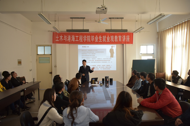 近日,土木与港海工程学院举办题为《职场沟通那些事儿》就业观教育讲座。拥有17年世界五百强外企工作经验、10年培训管理经验的北师大MBA、中欧MBA张鑫磊为60多名毕业生代表作报告,讲座由学院党委副书记李明金主持。
