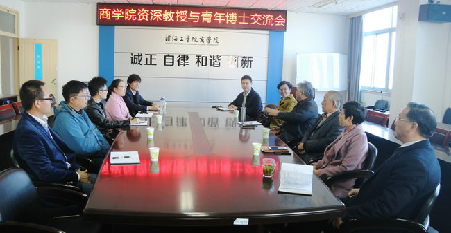 11月8日下午,商学院举办资深教授与青年博士交流会,邀请学校督导组姚铁明教授、商学院督导组聂茂林教授和孟立强教授前来指导。会议由副院长蒋智凯主持。商学院党委书记杨天华、院长宣昌勇以及2012年以后入职的所有博士参加交流会。