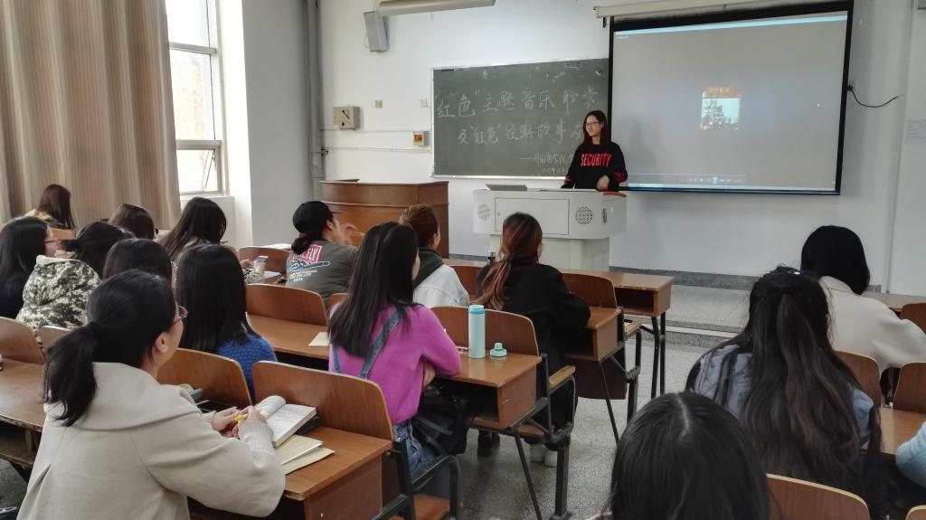 为更好的学习十九大精神,营造和谐稳定的校园环境、丰富党员组织文化生活,11月8日下午,外国语学院学生党支部举办红色音乐欣赏及红色经典故事交流会。支部25名学生党员、24名党课学员及部分积极分子参加了活动,欣赏与交流两部分活动交替进行,学生党支部书记魏学庆主持会议。