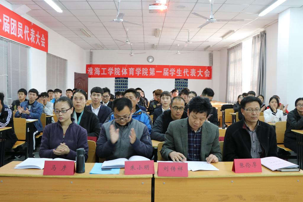 大会开幕,全体人员起立奏唱国歌。朱小明致开幕词,他从团学工作的重要性谈起,分享做好团学工作的宝贵经验,激励体育学院师生群策群力,不断改进团学工作方法。武传钟代表体育学院全体团员青年作团学工作报告,对体育学院四年来团学工作历程进行回顾和总结。体育学院学生会主席吴伟捷作学生会工作报告。他从学生干部工作机制、学风建设、作风建设、自我管理四个方面总结了学生会工作,号召学生干部们满腔热情地为同学们服务,充当老师与学生们的桥梁和纽带。与会代表们一起讨论团学代会工作报告,并选举产生淮海工学院体育学院分团委书记、副书记(教师)1人、副书记(学生)1人,第一届团代会委员3人,学生代表大会委员5人。刘传祥作大会总结发言。他高度总结了体育学院团学工作取得的成绩,对全体团员青年和学生干部提出严格要求并寄予期望,体育学院团学工作将紧紧围绕学校中心工作开展,为创建江苏海洋大学贡献力量。最后,大会在激昂的团歌声中闭幕,全体代表合影。