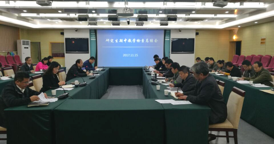 11月15日下午,学校召开2017-2018学年第一学期期中教学检查总结会。副校长舒小平,各研究生培养学院、教学质量处、后勤管理处、理学院、马克思主义学院及外国语学院负责人,研究生秘书及研究生处全体人员参加了会议。会议由研究生处处长刘玮炜主持。会议主要对本次期中教学检查情况进行总结,并对2018年研究生入学考试自命题工作进行部署。