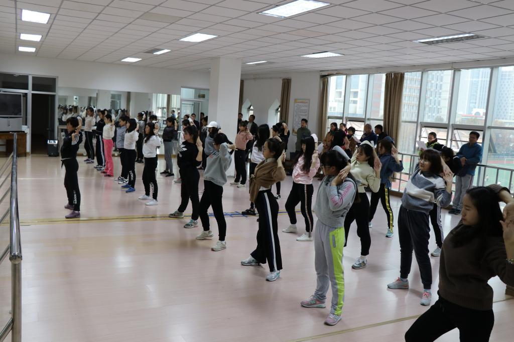 为了更好的贯彻与实施严谨治学、勤勉从教的教学精神,努力提高课堂教学质量,强化教师课堂设计、组织、调控的能力,展示高水平教师教学风采。体育学院于11月16日下午在通灌校区体育馆健美操房,举办了一堂精彩的示范课,由曾获得苏北高校青年教师授课比赛一等奖的李亚蓓老师主讲。体育学院的部分教师及健美操俱乐部的同学参加了此次示范公开课。