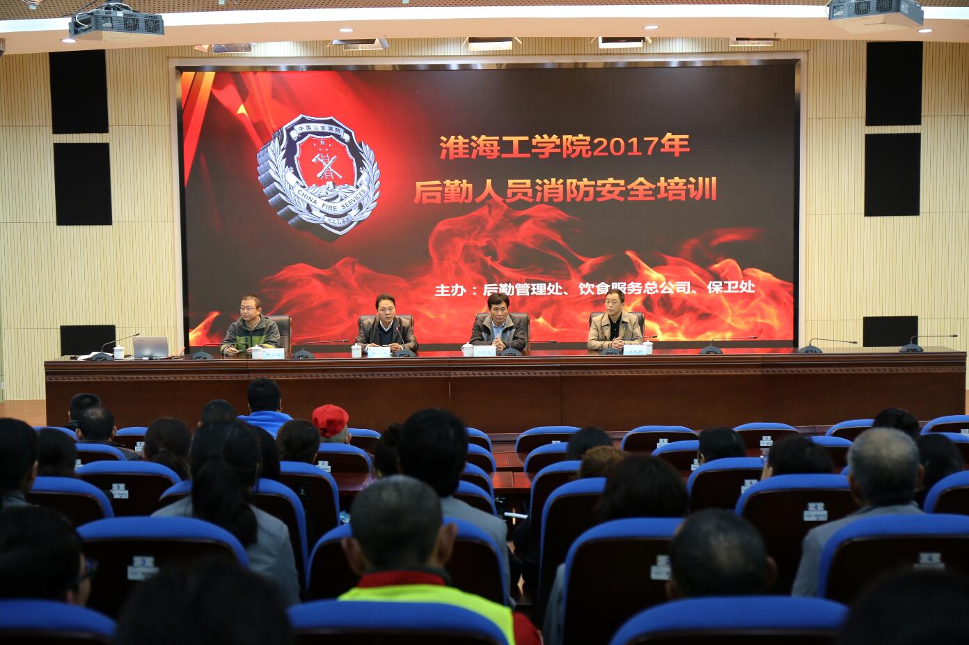 为进一步强化校园消防安全管理工作,提高后勤服务保障人员的消防意识和应急技能,我校于11月17日下午在会议中心黄海厅举办消防安全专题培训会。饮食服务总公司总经理孙盛杰、保卫处处长马建新、后勤处处长毛宝海,以及来自相关职能部门和物业、保安、餐饮公司的200余人参加了培训会。会议由后勤处处长毛宝海主持。