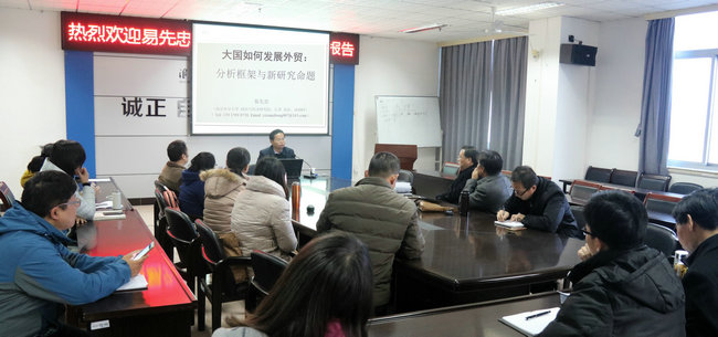 11月21日下午,南京审计大学政治与经济研究院易先忠副教授应邀在商学院会议室作题为《大国如何发展贸易:分析框架与新研究命题》的学术报告。商学院院长宣昌勇,国际经济与贸易系、金融系、物流系的全体教师,全院博士以及部分其他专业的教师聆听了报告。报告会由院长助理孙军主持。