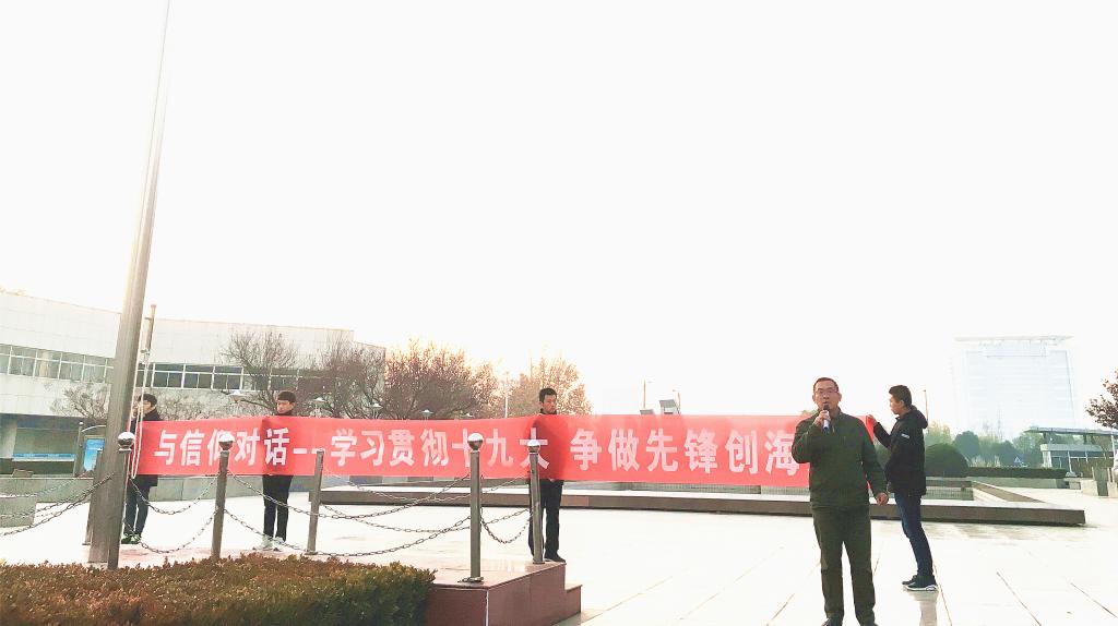 11月27日清晨,土木与港海工程学院“与信仰对话—学习贯彻十九大,争做先锋创海大”主题升旗仪式在苍梧校区主楼前广场举行。土木与港海工程学院党委副书记、副院长李明金,辅导员、班主任和苍梧校区全体学生参加了本次升旗仪式。升旗仪式由院团委副书记周琦主持。
