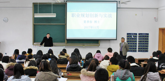 为引导学生树立明确的职业目标与职业理想,合理规划未来职业生涯,提高创新创业能力,11月29日下午,商学院于苍梧校区B楼102室开展职业规划创新与实践讲座。本次讲座有幸邀请到天津大学工学博士、南京大学MBA兼职导师、科技部专家库专家、江苏方洋水务有限公司董事兼副总夏季春博士担任主讲,商学院院长宣昌勇主持本次讲座。